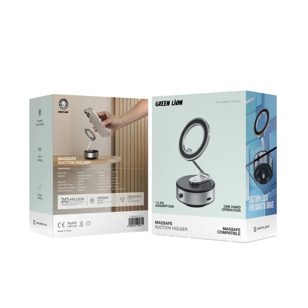 Green Lion Suction MagSafe Phone Holder یک پایه نگهدارنده حرفه‌ای است که با فناوری مغناطیسی MagSafe، پایه مکشی قدرتمند و طراحی ارگونومیک، تجربه‌ای ایمن و راحت از نگهداری تلفن همراه در خودرو یا میز کار را فراهم می‌کند. این مدل با قابلیت چرخش ۳۶۰ درجه، عملکرد یک‌دستی و ساختار مقاوم، گزینه‌ای ایده‌آل برای رانندگی، جلسات کاری یا استفاده روزمره است.