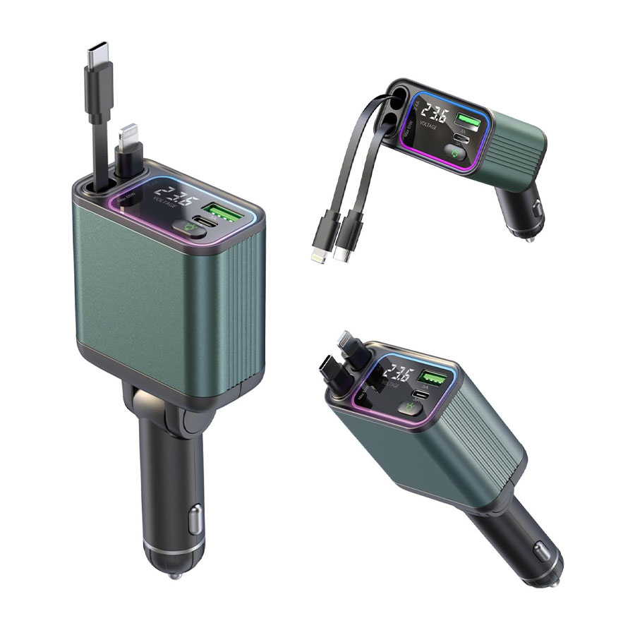 Green Lion Retractable 90W Car Charger PD 65W نسل جدیدی از شارژرهای فندکی حرفهای است که با طراحی جمعشونده، توان بالا و ایمنی پیشرفته، شارژ همزمان چند دستگاه را به سادهترین شکل ممکن فراهم میکند.این محصول با پشتیبانی از Power Delivery تا 65 وات، کابل کشویی 80 سانتیمتری و توان کلی 90 وات، انتخابی ایدهآل برای رانندگان، مسافران و کاربران حرفهای در سفرهای طولانی است.